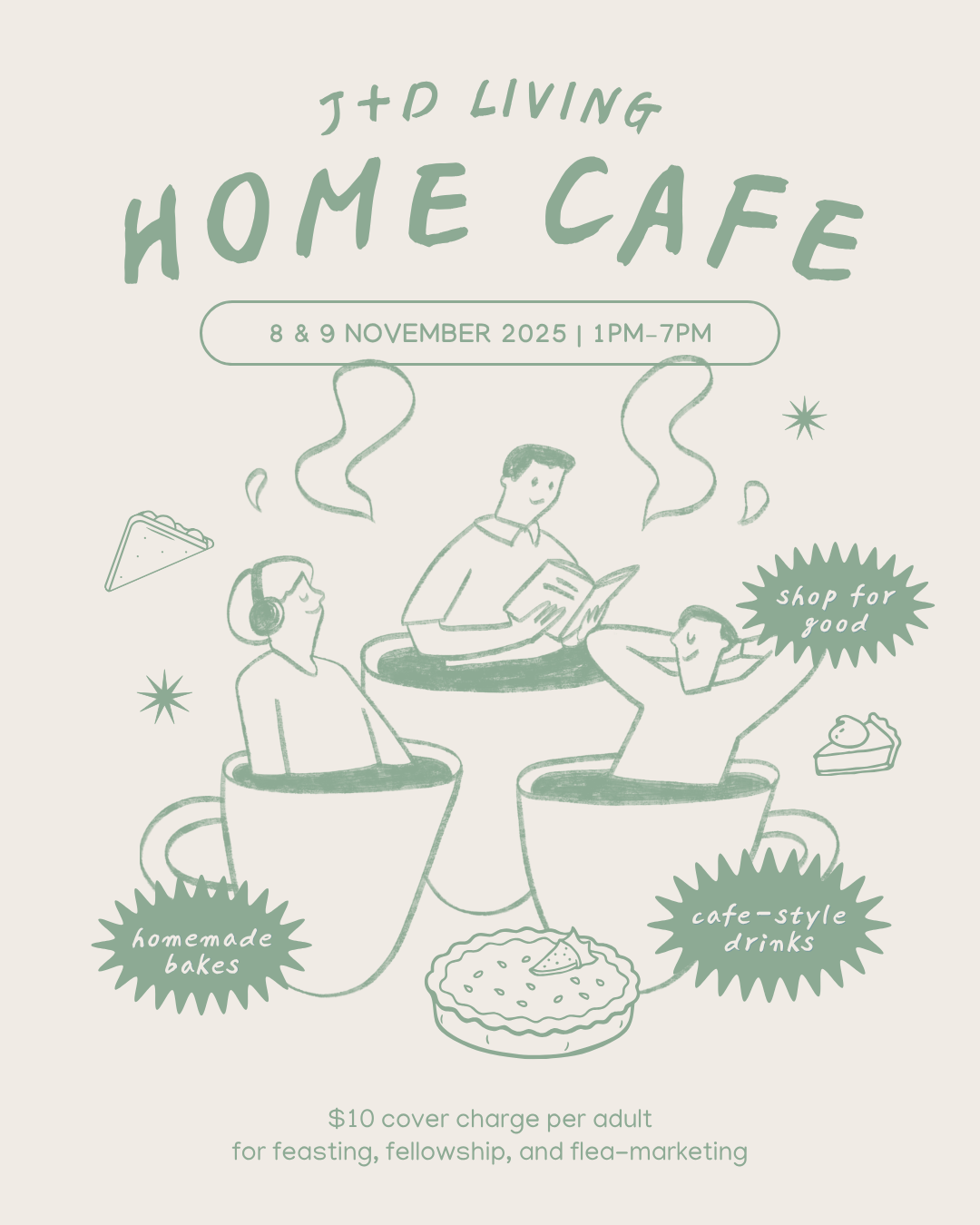 You’re invited to our home cafe on 8 / 9 November!We’ll be providing a variety of sweet and savoury homemade bakes along with a choice of a cafe-style beverage for a simple cover charge of S$10 per pax. We’ll also be putting up some of our household and personal items for sale over these two days.